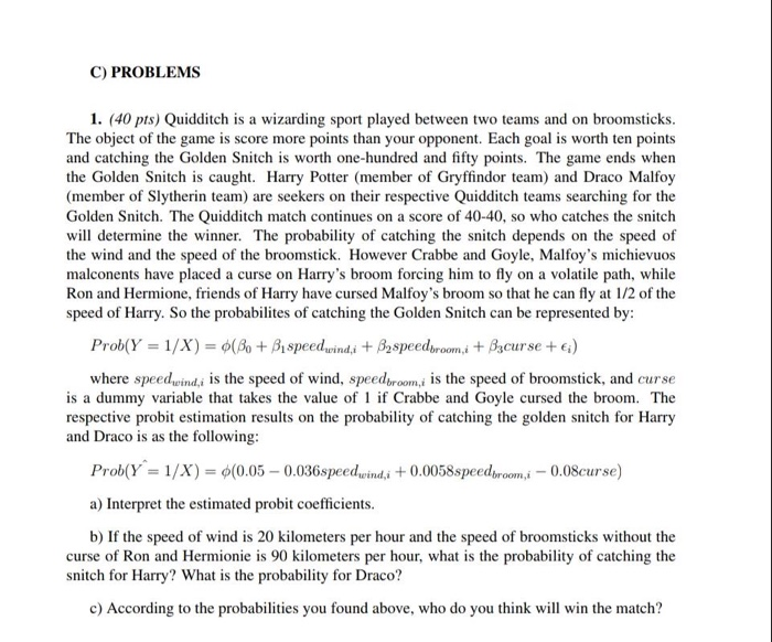 Solved C Problems 1 40 Pts Quidditch Is A Wizarding Chegg Com
